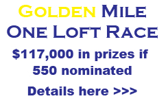 GOLDEN MILE: Register your name / or syndicate: Link to Form GOLDEN MILE CONTACT: Any questions regarding the One Loft Race WILL ONLY be dealt with via the form on the Golden Mile website (advert at right). DO NOT contact the SAHPA General Secretary. ![]() CLICK on picture for larger image.